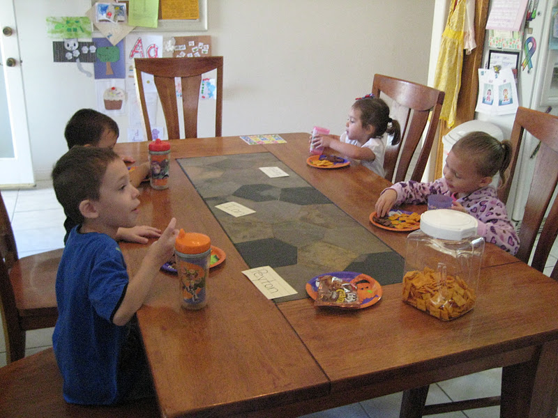 We are on week 5 of our homeschool preschool. We met at my house today and learned all about the letter Ee, the number 5, Humpty Dumpty, and Joseph and His Colorful Robe. The kids were enthusiastic and ready to learn. We used lots of glue today and practiced using our pencils. We sang lots of songs and reviewed all of the letters and numbers we've learned up to this point. I am happy at how well it went and think that they are getting used to the routine of school every week and look forward to it. Here are some photos of today's crafts and learning time. Aren't they just the cutest kids you've ever seen? They look extra cute when they are concentrating hard on their work.